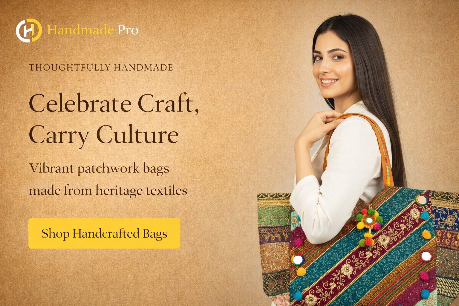 Cotton Bohemian Bag, Sling Bag for Girls and Women Handmade Cotton Purse- HB10055